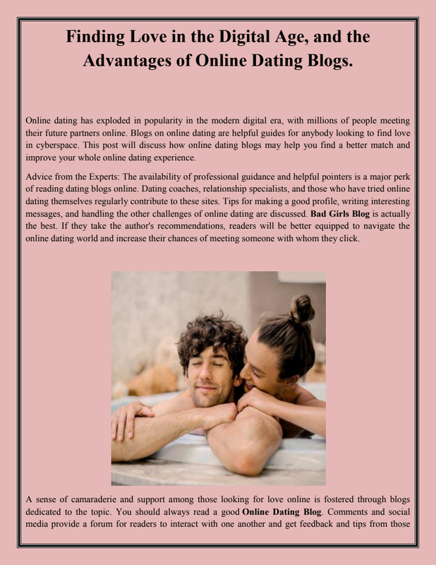 The rise of online dating has simplified the process of meeting new people and forming romantic or platonic relationships in the modern day. Blogs on online dating have become popular as a way for people to share their experiences and advice with others as they try to find love in the digital world. This essay delves into the realm of dating blogs to discuss its many benefits to the contemporary dating scene.